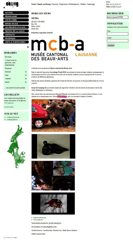 *Susann Wintsch , born, 1967, studied Art History and Comparative Literature at the University of Zurich. She teaches and lectures about Art History, Contemporary Art and Theory at Zürcher Hochschule der Künste ZHdK, Dept. Cultural Analysis and Art Education . On behalf of a national research project at ZHdK she introduced a new magazine for artists on DVD called COMPILER , which subsequently developed into TREIBSAND contemporary Art Space on DVD. Till date she has released “Was ist Kunst, Marinela Kozelj” (COMPILER, Ex-Jugoslavia) in collaboration with the artist Milica Tomic (Serbia/Vienna) in 2003. “Analysing While Waiting – For Time to Pass: Contemporary Art in Tehran” was released in 2007 with the artist Parastou Forouhar (Tehran/Frankfurt A.M.). The forthcoming Volume “Keep on Keeping on / Devam Etmeye Devam: Contemporary Art in Istanbul” curated together with Necla Rüzgar will be released in October 2012. In September 2013 Susann Wintsch will be curating a broad exhibition on Contemporary Positions in Iranian Art in collaboration with Museum Rietberg in Zurich . Susann Wintsch is the chairwoman of stromereien, Zurich Performance Festival , and has been a member at the Commission of Public Art in the county of Aargau, Switzerland, for many years now. TREIBSAND, Susann Wintsch'in * küratörlüğünü yaptığı, DVD üzerinde kendine özgü bir güncel sanat alanıdır. Ekim 2012'de yayımlanacak olan TREIBSAND Cilt 2, İstanbul güncel sanatına odaklanıyor. Türkçe olarak “Devam Etmeye Devam”, İngilizce olarak da “Keep On Keeping On” başlığını taşıyan sergi, 34 sanatçının eserlerini içermektedir. Cilt 2'de, geleceğin tarihi, adalet ve birlikte var olmanın yolları üzerine sorular soran farklı kuşaklardan sanatçıların eserleri sunulmaktadır. Yıllardır ele alınan ve sürekli olarak geliştirilen bu meseleler, güncel sanat estetiği ve fikriyle ifade edilmiştir. TREIBSAND Cilt 2'deki yapıtlar, politikten şiirsele, kavramsaldan hikâyesel anlatıma kadar çok çeşitli yaklaşımları içinde barındırmaktadır. Bu yapıtlar, Ankara ve İstanbul'da yaşayan ve üreten Necla Rüzgar ile yakın işbirliği sonucunda seçilmiştir. TREIBSAND Cilt 2, Ekim 2012'de İstanbul SALT Galata'da lanse edilecek, müzelerden, kitapçılardan ve internet üzerinden www.treibsand.ch adresinden temin edilebilecektir. Sanatçılar : Ahmet Öğüt, Banu Cennetoğlu, Bashir Borlakov, Bengü Karaduman, Burak Delier, Cengiz Çekil, Cengiz Tekin, Ender Gelgeç, Extramücadele, Fahrettin Örenli, Ferhat Özgür, Fulya Çetin , Füsun Onur, Gözde İlkin, Gülçin Aksoy, Gülsün Karamustafa, Hale Tenger, Hasan Salih Ay, İrfan Önürmen, Nancy Atakan, Nazım Hikmet Richard Dikbaş, Necla Rüzgar, Neriman Polat, Nevin Aladağ, Nil Yalter, Nilbar Güreş, Orhan Pamuk, Özlem Günyol & Mustafa Kunt, Pinar Yolaçan, Servet Koçyiğit, Şükran Moral , Yasemin Nur, Yasemin Özcan Susann Wintsch (1967), Zürih Üniversitesi'nde Sanat Tarihi ve Karşılaştırmalı Edebiyat üzerine eğitim almıştır. Halen Zürcher Hochschule der Künste ZHdK, Kültürel Analizler ve Sanat Eğitimi Bölümü'nde, Sanat Tarihi, Çağdaş Sanat ve Teori üzerine dersler vermektedir. Susann Wintsch, ZHdK'nin ulusal araştırma projesi adına, sanatçılar için COMPILER isimli yeni bir DVD dergi hazırlamış, bu çalışmayı daha sonra TREIBSAND DVD ÜZERİNDE GÜNCEL SANAT ALANI'na dönüştürmüştür. 2003 yılında Milica Tomic (Sırbistan/Viyana) ile birlikte “Was ist Kunst, Marinela Kozelj” (COMPILER, Eski Yugoslavya) gerçekleştirir. 2007'de Parastou Forouhar (Tahran/Frankfurt A.M.) ile birlikte “Analysing While Waiting – For Time to Pass: Contemporary Art in Tehran”ı hazırlar. Necla Rüzgar ile birlikte küratörlüğünü yaptığı TREIBSAND Cilt 2, “Keep on Keeping on/Devam Etmeye Devam: İstanbul'da Güncel Sanat”, adıyla Ekim 2012'de çıkacaktır. Susann Wintsch, Eylül 2013'te, Zürih Rietberg Müzesi işbirliğiyle, “İran Sanatında Duruşlar” adlı geniş kapsamlı bir serginin küratörlüğünü gerçekleştirecektir. Susann Wintsch, uzun yıllardan bu yana İsviçre'nin Aargau eyaleti Kamusal Sanat Komisyonu üyesi ve Zürih Performans Festivali stromereien 'in başkanıdır.